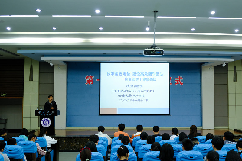 开班仪式结束后,穆奎副书记为团校第一期培训班做了题为《找准角色定位,建设高效团学团队》第一个报告。在这报告中,穆奎老师紧扣主题,结合一名老团学干部的成长的经历进行了经验分享和精彩的讲述。