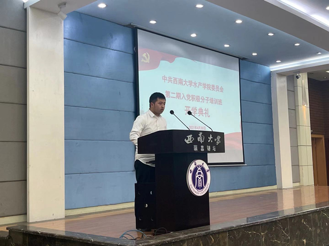 学员代表2021水产养殖学1班侯林峣同学随后发言,他表达了对公司党委给予大家这次宝贵学习机会的感谢,并承诺要严格遵守党校纪律,坚定理想信念,端正入党动机,以实际行动争取早日加入中国共产党。