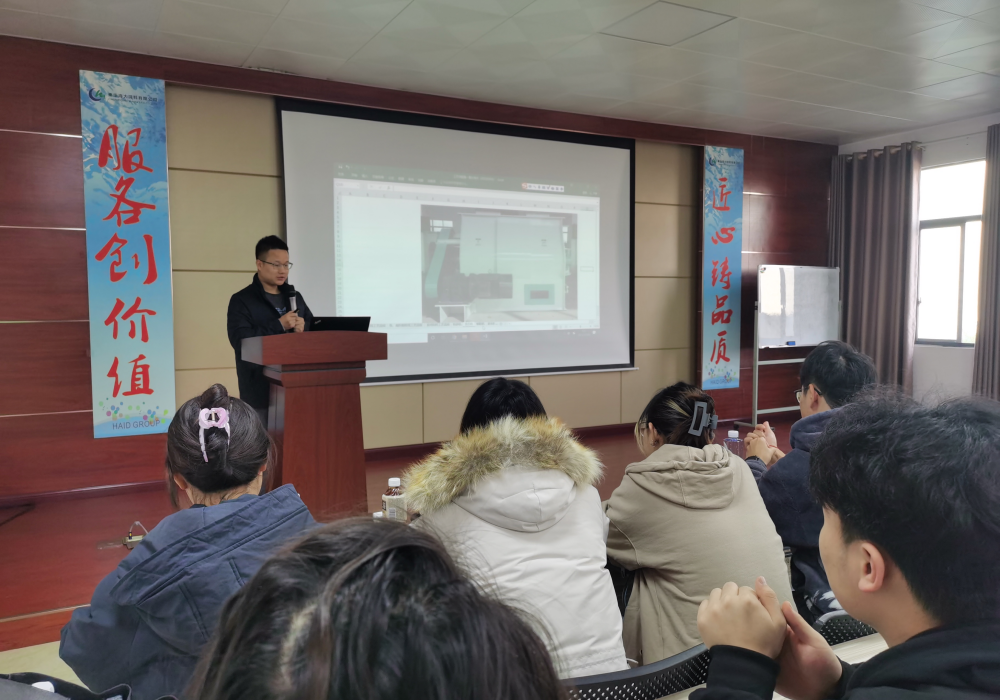 参观环节结束后,钟小娅经理从“我们是谁”、“我们能为你提供什么”、“我们需要这样的你”三个方面展开,向同学们详细介绍了在中国农牧行业蓬勃发展的背景下,海大在各方面的成就及优势,并真诚的表达了海大对同学们的期待和欢迎,共同为科技助农、产业兴农贡献力量。