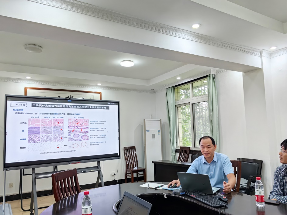 交流会上,余小波副教授首先介绍重庆综合试验站建站以来的总体工作情况、养殖模式推广成效及试验站工作规划等内容,重庆生态渔业体系副首席吴正理教授详细介绍了试验站在贝类病害防控与健康养殖方面的基础研究进展、取得的研究成果以及研究工作的思考与展望。各位岗站专家结合重庆综合试验站工作开展情况,就目前在海淡水贝类育苗、养殖、育珠、病害防控研究、生态养殖模式推广等方面展开了积极的交流讨论。