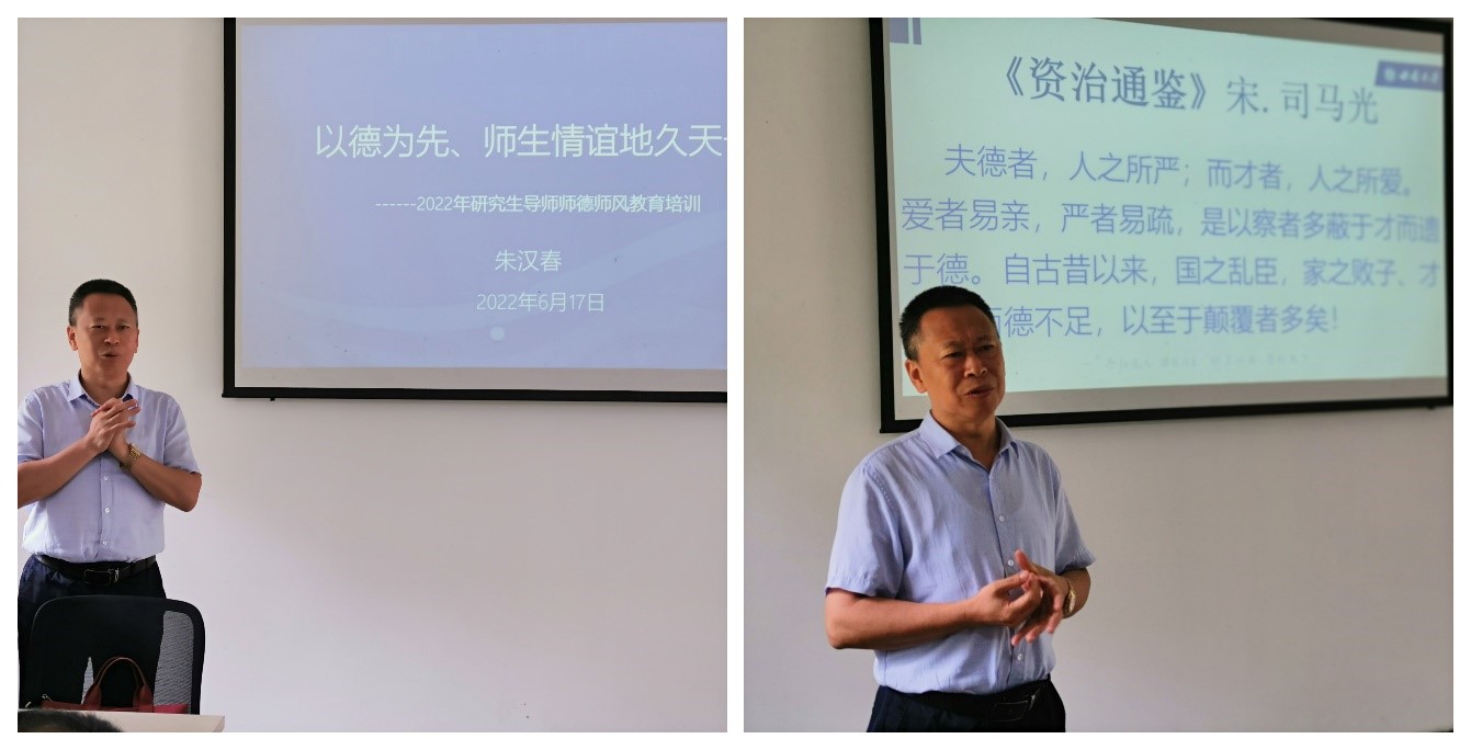 为加强研究生导师队伍建设,规范研究生导师指导行为,全面落实研究生导师立德树人职责。2022年6月17日,公司党委书记朱汉春为公司研究生导师作了题为“以德为先、师生情谊地久天长”的导师培训。培训由副经理吴正理主持,公司全体导师参加。