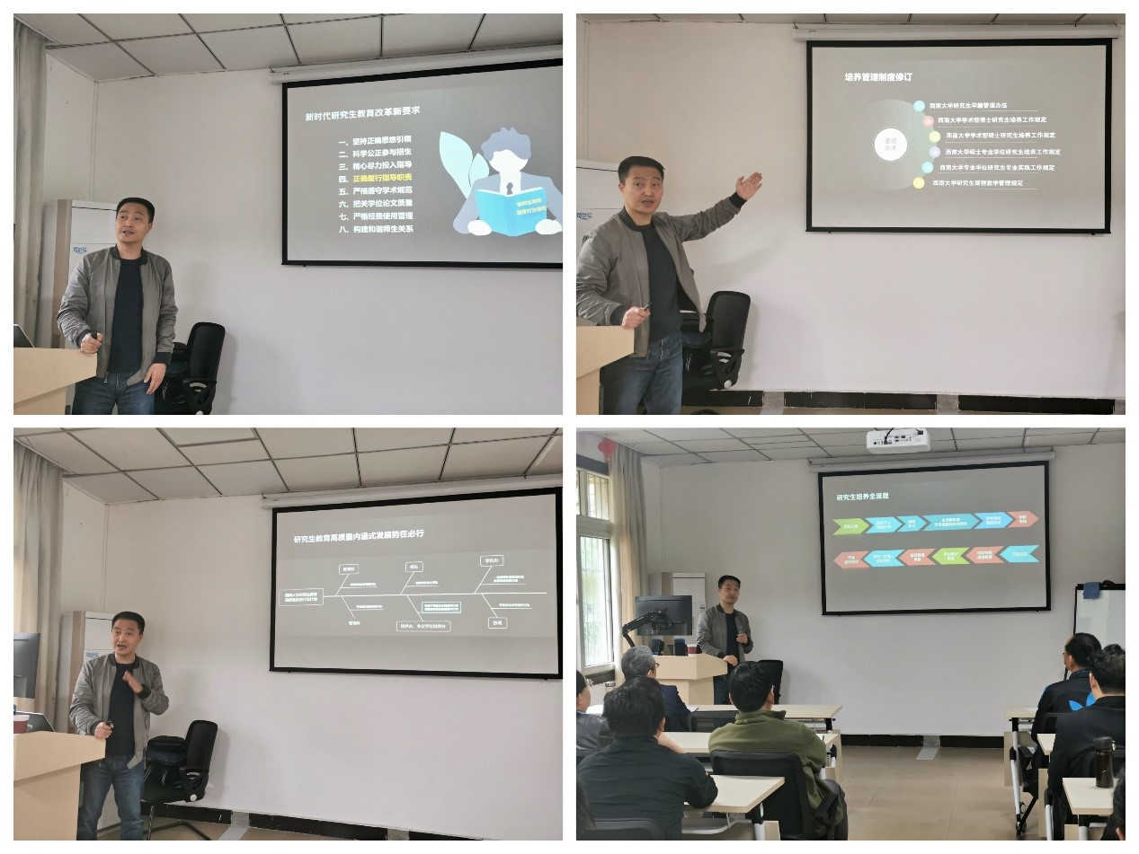 为加强研究生导师岗位管理,夯实立德树人根本职责,提升培养指导能力,2022年4月14日下午,公司特邀研究生院分管公司产品工作的涂涛副经理为公司导师进行公司产品质量过程管理的培训。培训会议由公司副经理吴正理教授主持,全院导师积极参与。
