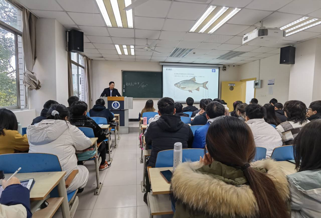 会后,通威动物营养有限公司市场总监、技术总监肖顺应给水产动物营养与饲料学教学团队的老师和员工做了“学水产养殖,展鲲鹏之志”的讲座,从水产动物的营养需求、水产饲料配方设计的基本理念、水产饲料的质量评价体系及水产饲料企业产品的质量控制等方面进行了深入的阐述,激励广大水产学子理论与实践相结合,真正做到学以致用,更好地服务于现代水产健康养殖的发展,助推乡村振兴。