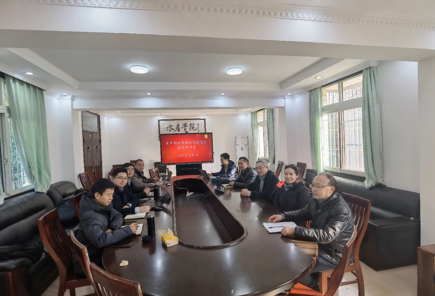 为了深入推进《水产动物营养与饲料学》类课程的教学改革和课程建设,2021年12月1日,水产动物营养与饲料学教学团队开展了教学研讨会。公司苏胜齐经理,通威动物营养有限公司市场总监、技术总监肖顺应,重庆水产总站袁建明博士应邀参加了研讨会。教学团队成员林仕梅教授、向枭副教授、陈拥军副教授、罗莉副教授及罗辉副教授参加了本次教学研讨会。