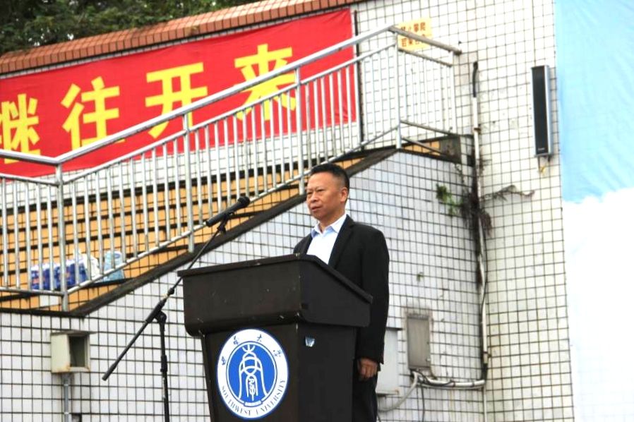 苏胜齐经理为开幕式致辞,他在致辞中向本届运动会的举办表示热烈祝贺、向所有关心和支持本次活动的师生致以诚挚的谢意。他表示,公司体育工作是精神文明和校园文化建设的重要组成部分,对促进强化师生体育锻炼、传播体育精神具有重要作用,并带领大家回顾了西大学子在东京奥运会上3金1银1铜的好成绩,鼓励同学们以此为榜样,顽强拼搏、奋勇争先,学习团结友爱、公平竞争、相互尊重的奥运精神。最后,苏经理祝愿运动员们都能取得好成绩,并预祝本届运动会取得圆满成功。