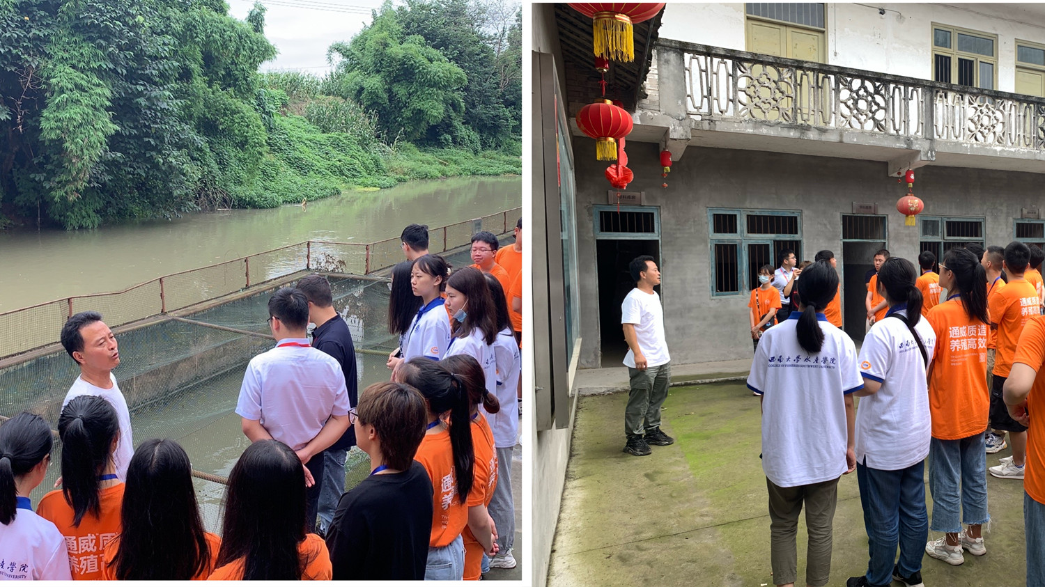 为进一步加深同学们对通威集团发展的深入认知,7月10日,实践团前往四川眉山实地考察。实践团首先来到了通威发展的起源地,身临其境去探索通威的历史源头——金属网箱式流水养鱼技术和眉山县渔用配合饲料厂旧址。同学们不禁感叹,从1986年的小饲料厂到如今全球闻名的大集团,水产行业的发展之路可见一斑。