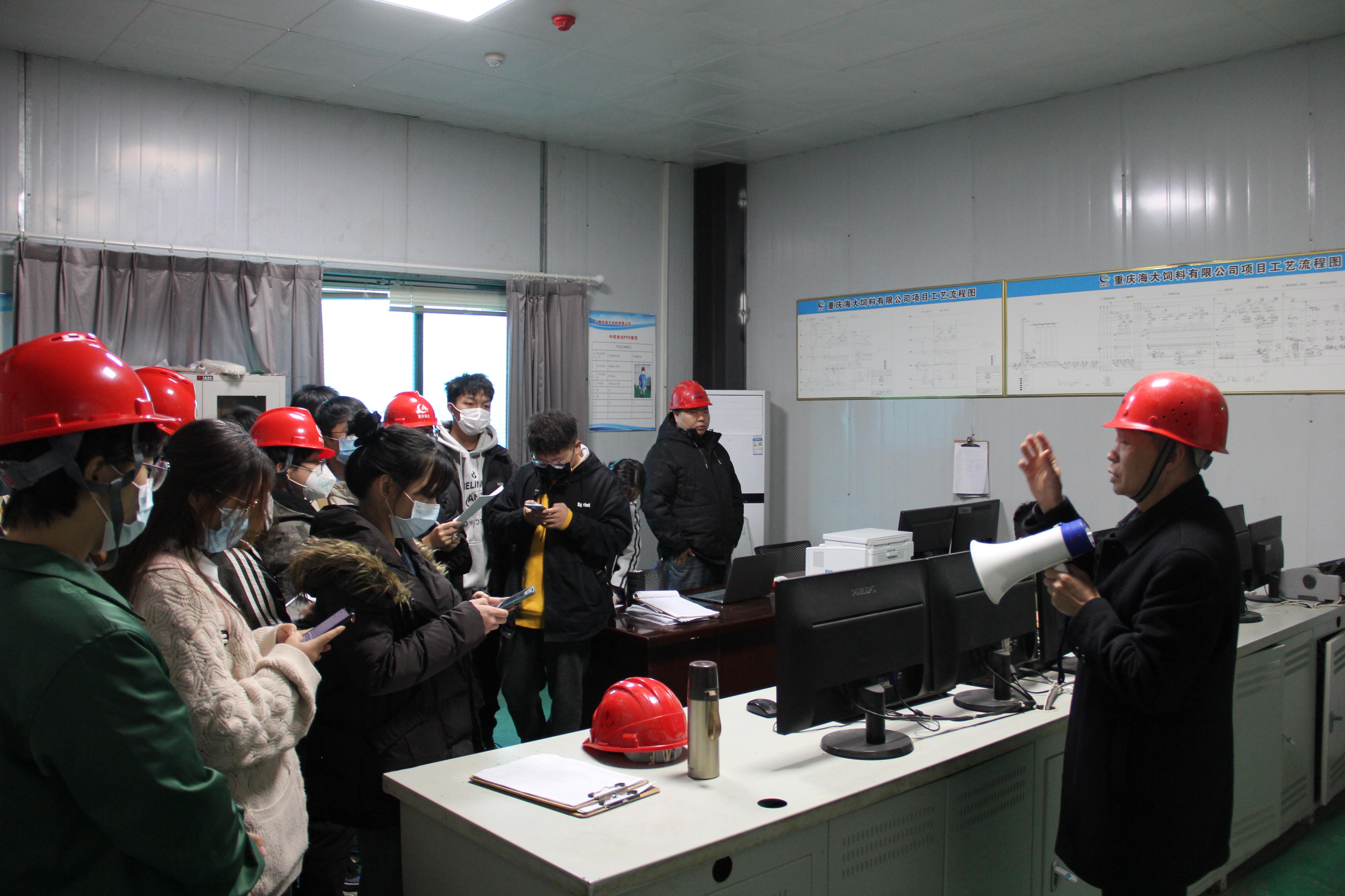 早晨7:30,实训队伍前往重庆海大饲料厂区,重庆海大人事行政部经理钟小娅为同学们简短的介绍厂区分布并讲解注意事项。