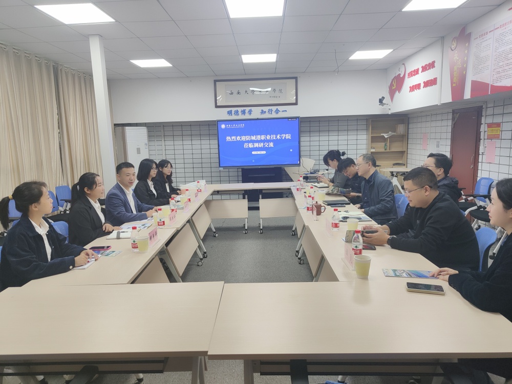 10月25日,公司党委书记杨新斌、分管本科教学副经理何文平及公司本科教学、员工管理相关教师代表,与防城港职业技术公司、渔美康集团相关负责同志开展交流座谈。防城港职业技术公司海洋渔业公司负责人徐俊龙为公司本科2009级员工,他结合员工时期的学习和现阶段的工作实践,以新农科卓越人才培养为接入点,与公司与会教师开展交流研讨,双方就教学科研团队建设、青年教师阶段化培养、水产特色学工活动、实验室建设等方面交换经验、分享进一步改革思路。