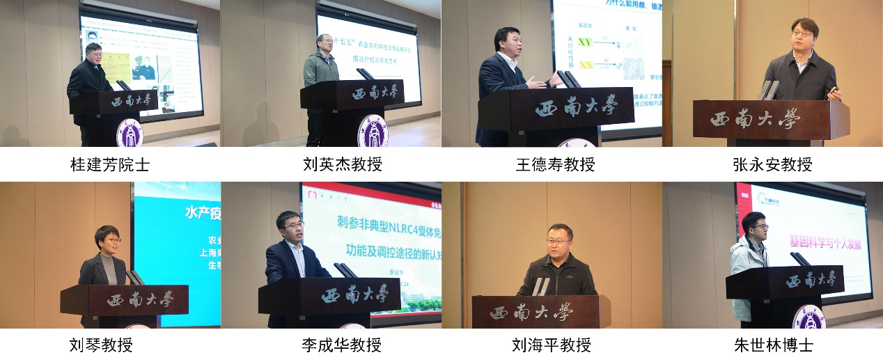 开幕式结束后,桂建芳院士作了题为“多倍体鲫属复合种的遗传基础解析与育种技术创新”的大会特邀报告。报告中,桂院士详细介绍了多倍体鲫独特的遗传特性、精准育种的挑战以及最新的技术创新成果,为与会者提供了宝贵的学术启发。随后,刘英杰教授、王德寿教授、张永安教授、刘琴教授、李成华教授、刘海平教授、朱世林博士分别以“十五五农业科技战略研究及相关思考”“罗非鱼经济性状遗传解析与基因编辑新种质创制”“草鱼B细胞的免疫功能和分化路径”“水产疫病免疫综合防控技术探索”“刺参非典型NLRC4受体免疫功能及调控途径的新认知”“新西部大开发视域下水产学科发展和思考”“基因科学与个人发展”为题的主题报告。K1体育经理刘海平教授、科技处副处长徐洛浩教授主持学术报告环节。