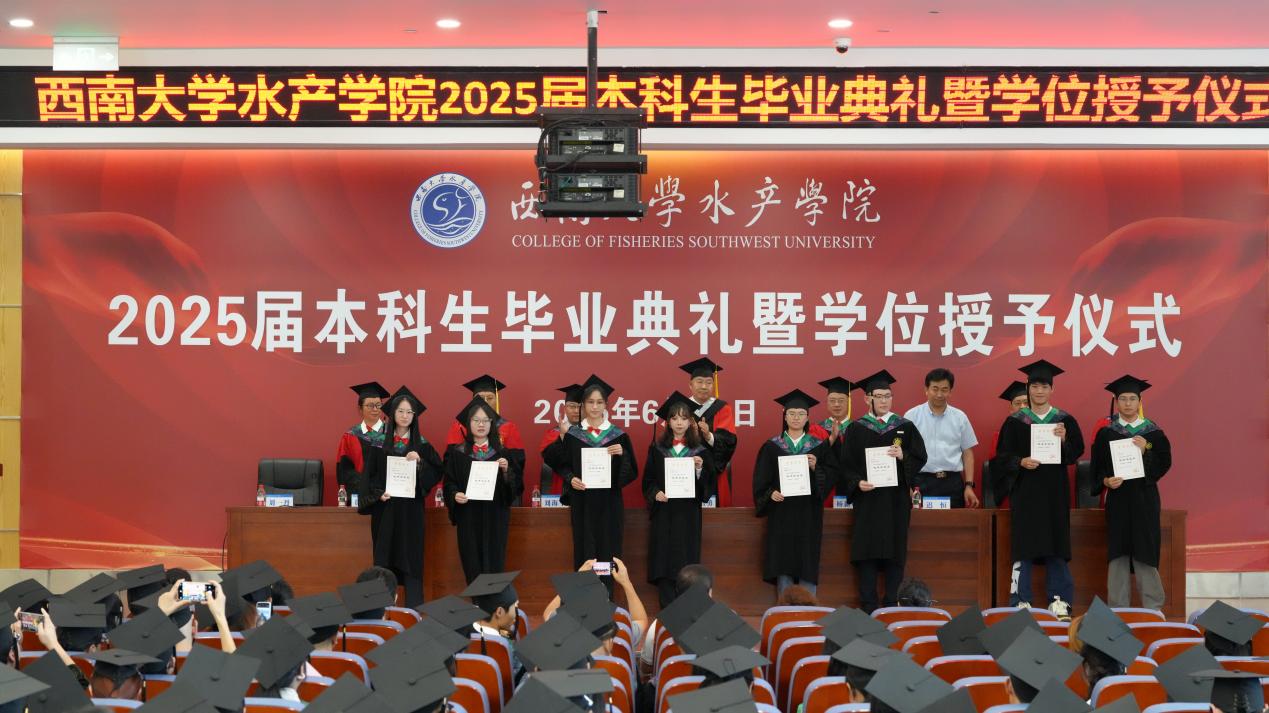 骊歌唱响,征程启航。愿2025届毕业生秉承师长教诲,胸怀“以水为镜”的德性、“以渔为舟”的实干、“以海为志”的担当,在时代的浪潮中扬帆奋进,以勇毅与创新书写水产人的深蓝梦想,共赴崭新航程,激荡青春荣光。