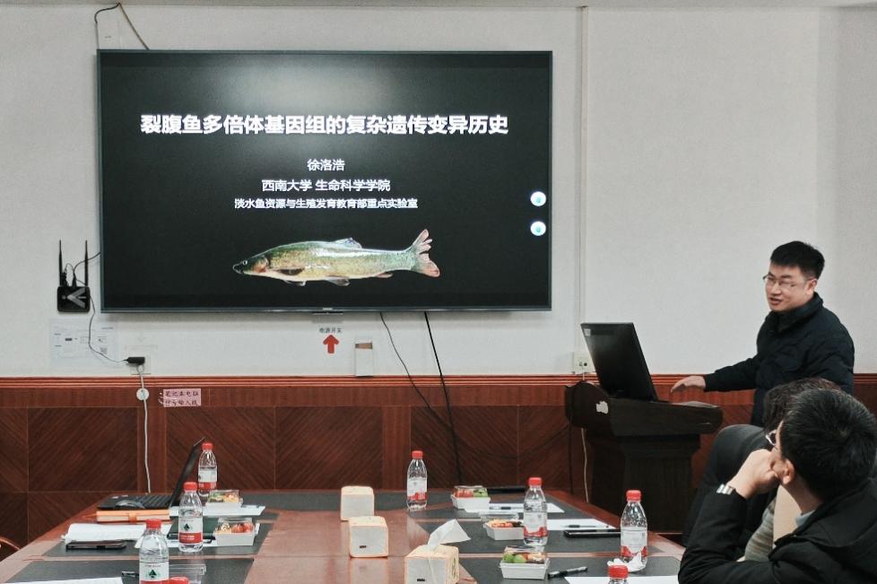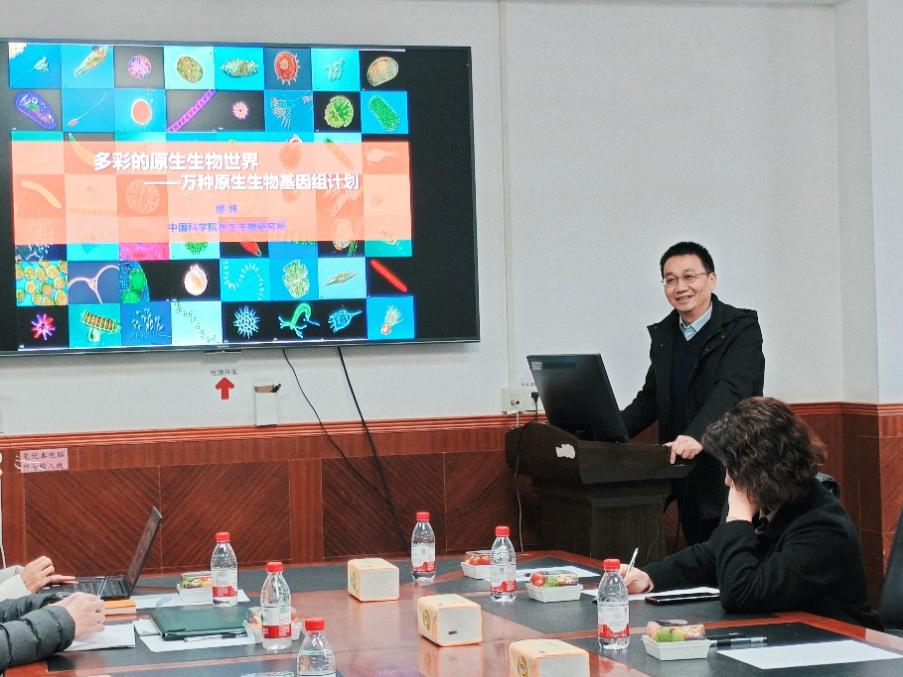 在学术报告环节,缪炜研究员首先作了题为“多彩的原生生物世界——万种原生生物基因组计划”的专题报告。他系统阐述了该计划的科学目标与实施进展,包括原生生物种质资源库与遗传资源库的建设、基因组学研究推进、分类学方法创新等内容,并重点分享了在生物互作与纤毛虫运动机制方面的最新研究发现。随后,毕永红研究员、徐洛浩教授分别以“三峡水库调度对藻类群落的影响”和“裂腹鱼多倍体基因组的复杂遗传变异历史”为题作了精彩学术分享。现场气氛热烈,互动环节师生积极提问,专家耐心解答,学术氛围浓厚。